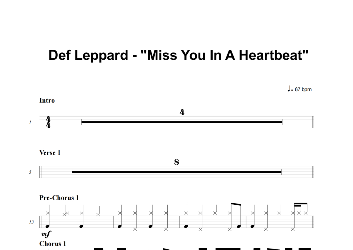 Def Leppard《Miss You In A Heartbeat》架子鼓谱