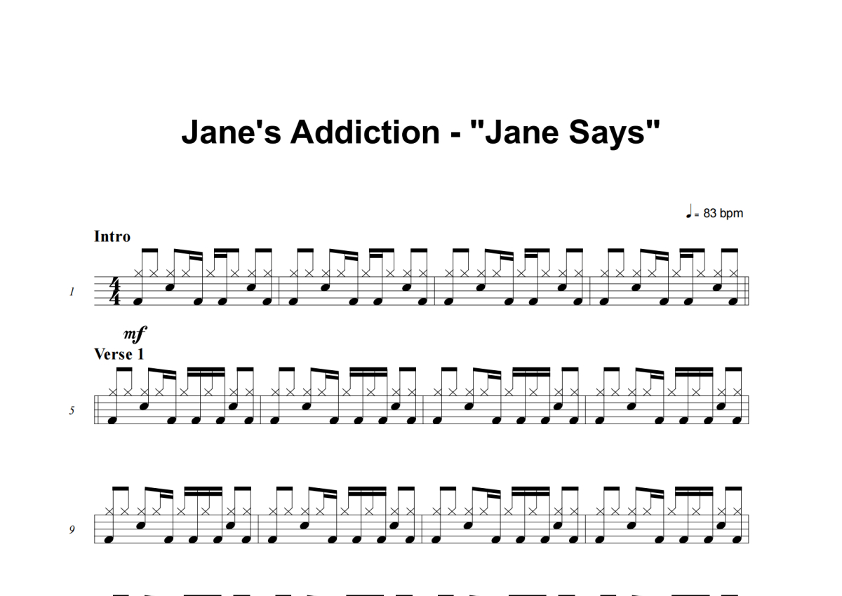 Jane's Addiction《Jane Says》架子鼓谱