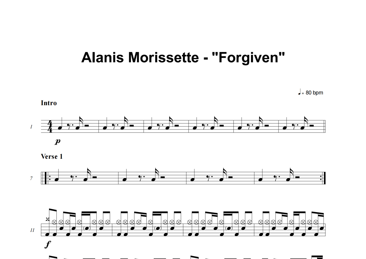 《Forgiven》是Alanis Morissette演唱的一首歌曲,这份架子鼓谱共有三张高清图谱,图谱由 @举个例子 编配上传,图谱使用五线谱编配,使用这份Forgiven架子鼓谱,你将能够轻松地敲打出这首Alanis Morissette的Forgiven,快来尝试吧。