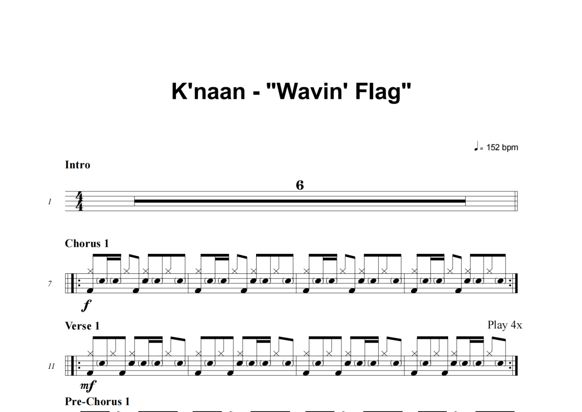 K'naan《Wavin' Flag》架子鼓谱