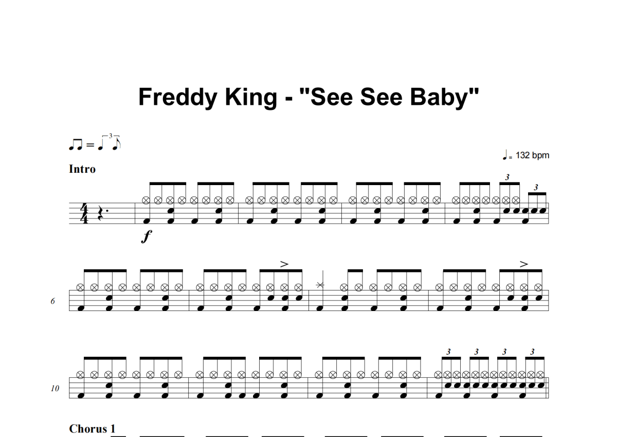 《See See Baby》是Freddy King演唱的一首歌曲,这份架子鼓谱共有三张高清图谱,图谱由 @举个例子 编配上传,图谱使用五线谱编配,使用这份See See Baby架子鼓谱,你将能够轻松地敲打出这首Freddy King的See See Baby,快来尝试吧。