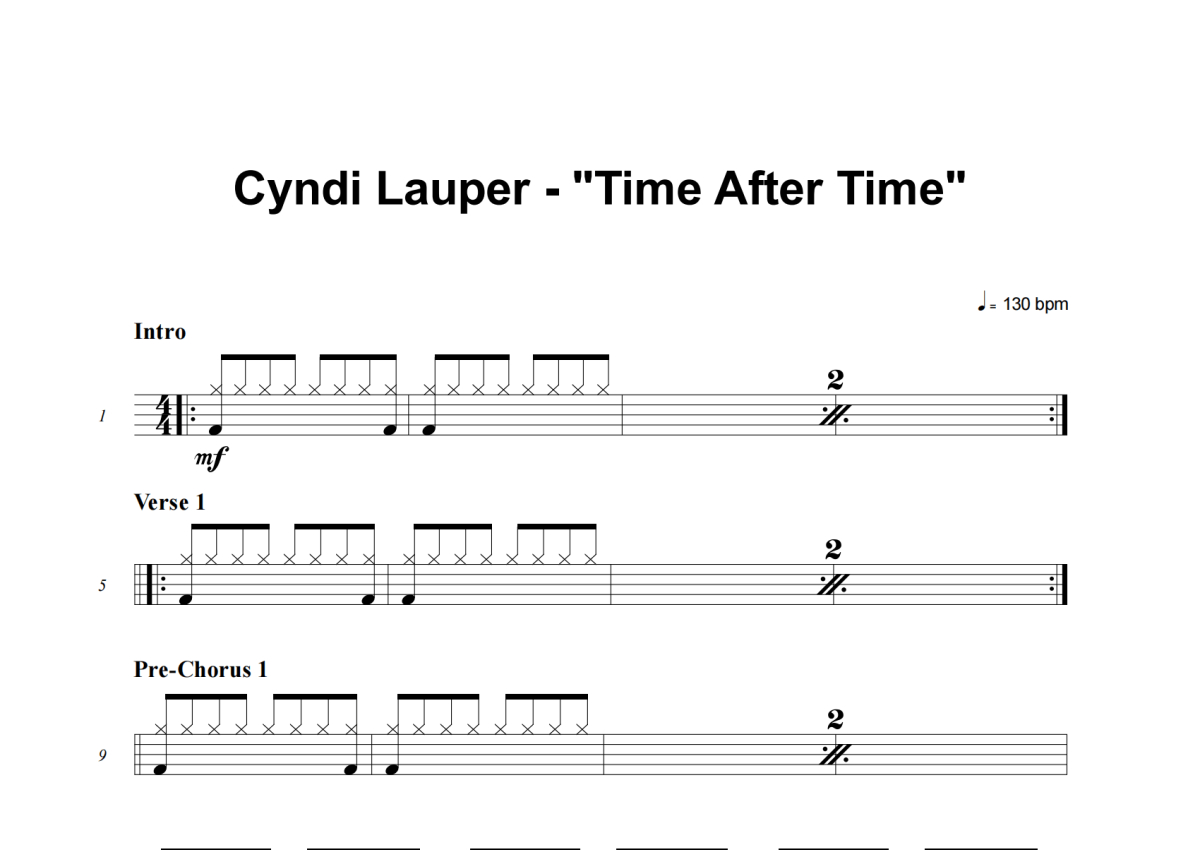 Cyndi Lauper《Time After Time》架子鼓谱