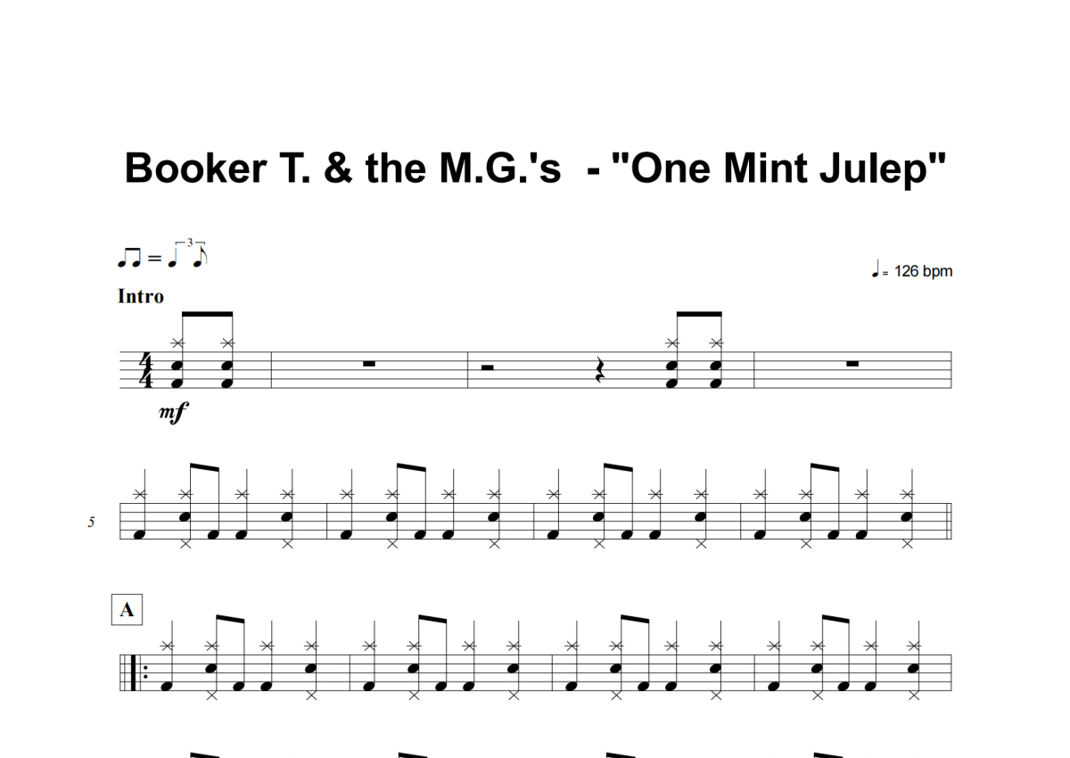 Booker T. & The M.G.'s《One Mint Julep》架子鼓谱