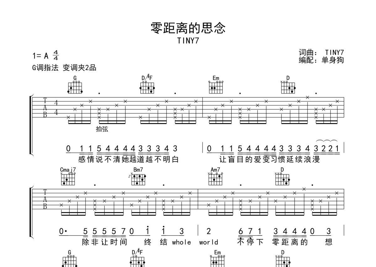 TINY7《零距离的思念》吉他谱 - G调弹唱六线谱