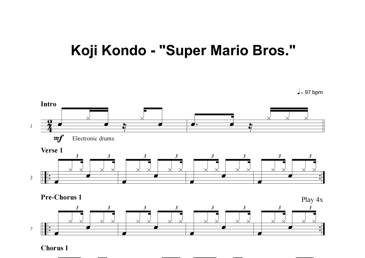 Koji Kondo《Super Mario Bros. Theme Song》架子鼓谱
