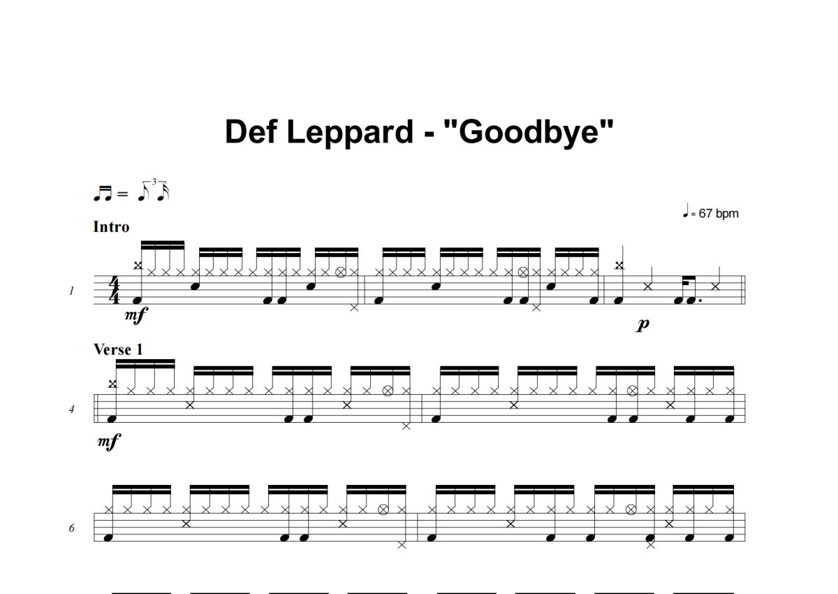 Def Leppard《Goodbye》架子鼓谱
