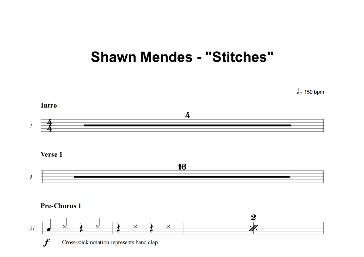Shawn Mendes《Stitches》架子鼓谱
