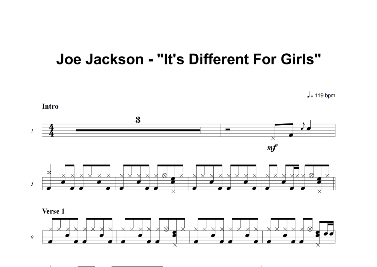 Joe Jackson《It's Different For Girls》架子鼓谱