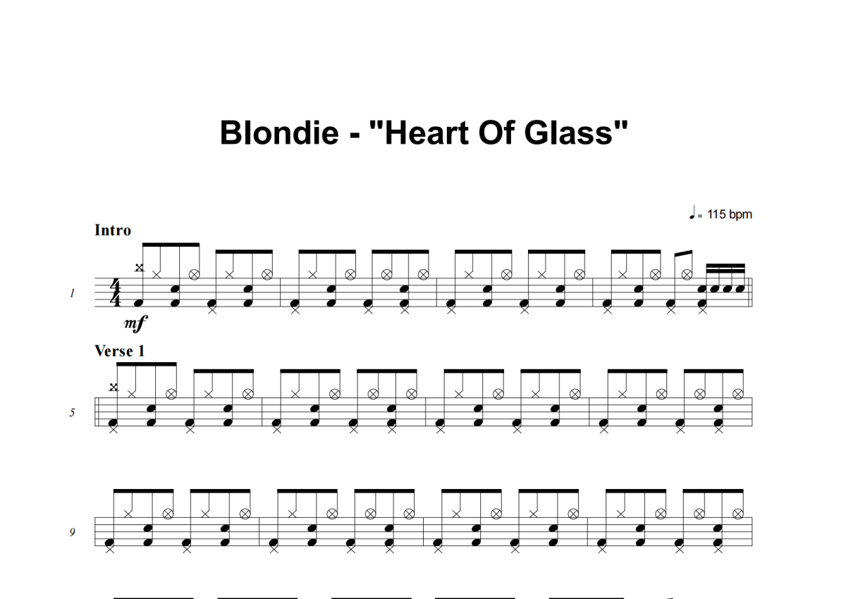 《Heart Of Glass》是Blondie演唱的一首歌曲,这份架子鼓谱共有四张高清图谱,图谱由 @举个例子 编配上传,图谱使用五线谱编配,使用这份Heart Of Glass架子鼓谱,你将能够轻松地敲打出这首Blondie的Heart Of Glass,快来尝试吧。