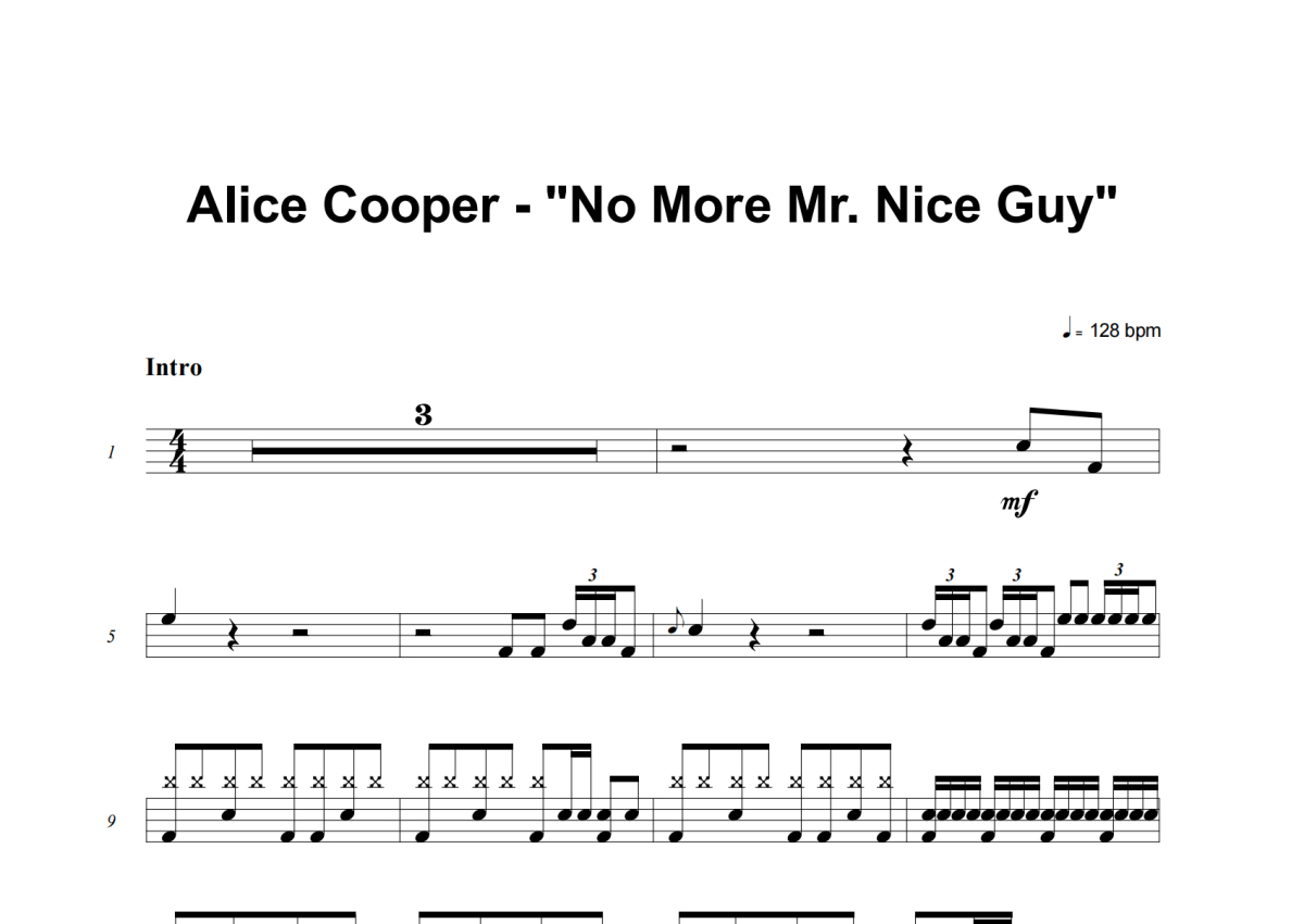 Alice Cooper《No More Mr. Nice Guy》架子鼓谱