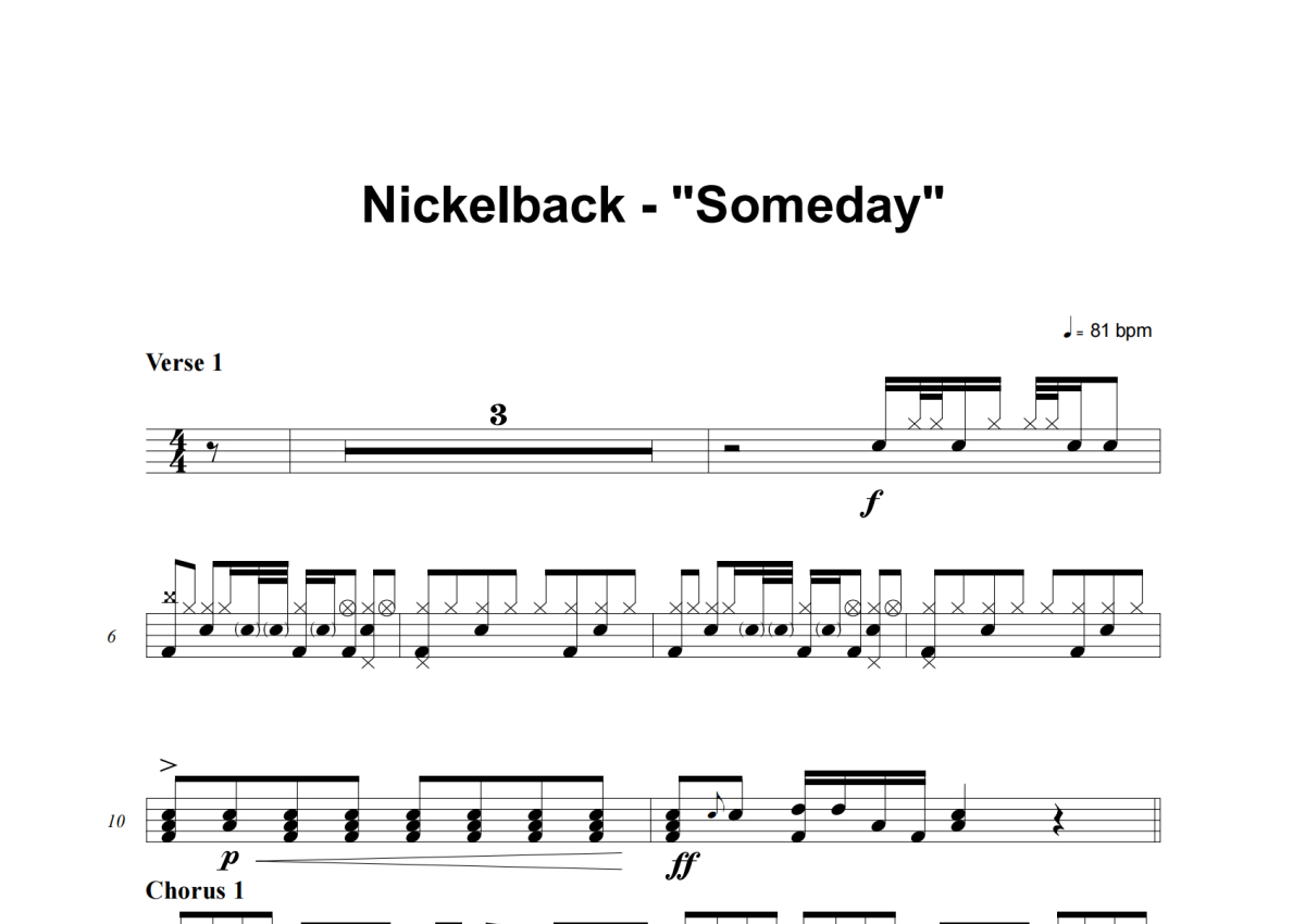 Nickelback《Someday》架子鼓谱