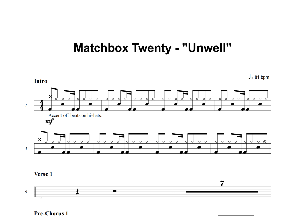 Matchbox Twenty《Unwell》架子鼓谱