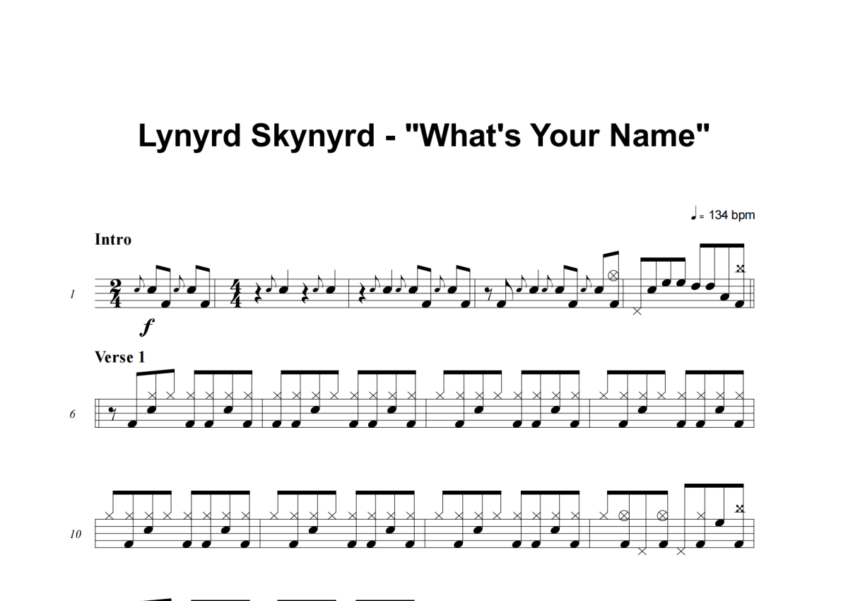 Lynyrd Skynyrd《What's Your Name》架子鼓谱