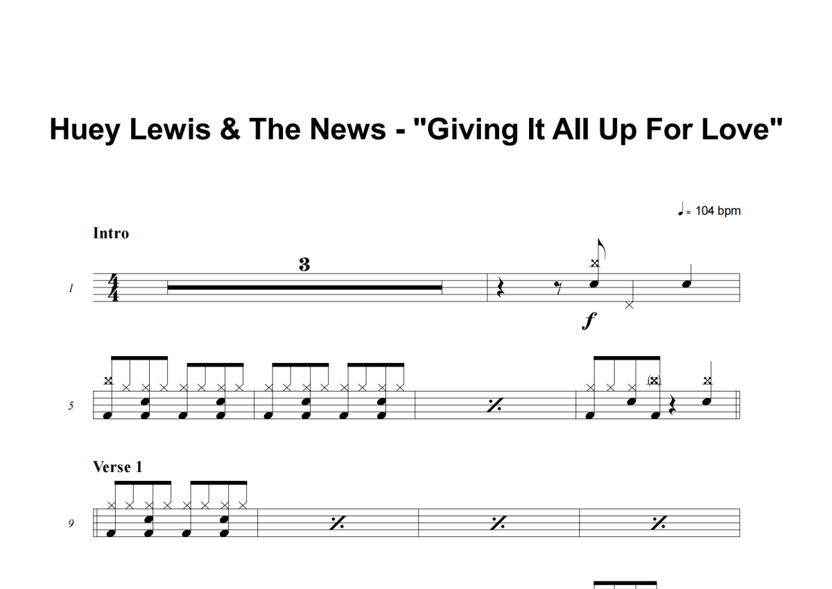Huey Lewis And The News《Giving It All Up For Love》架子鼓谱