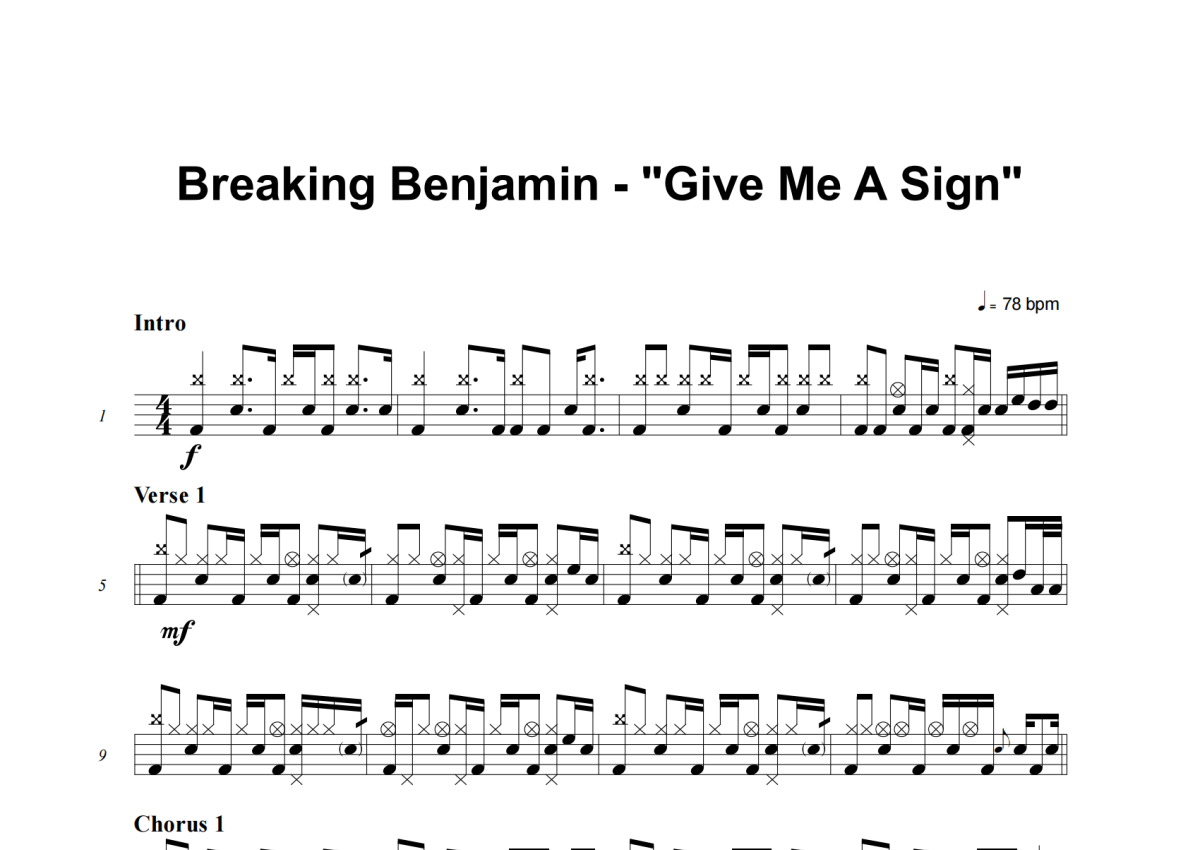 Breaking Benjamin《Give Me A Sign》架子鼓谱