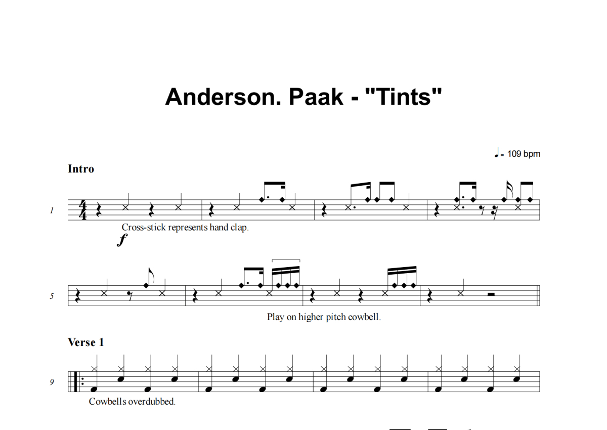 Anderson Paak《Tints》架子鼓谱