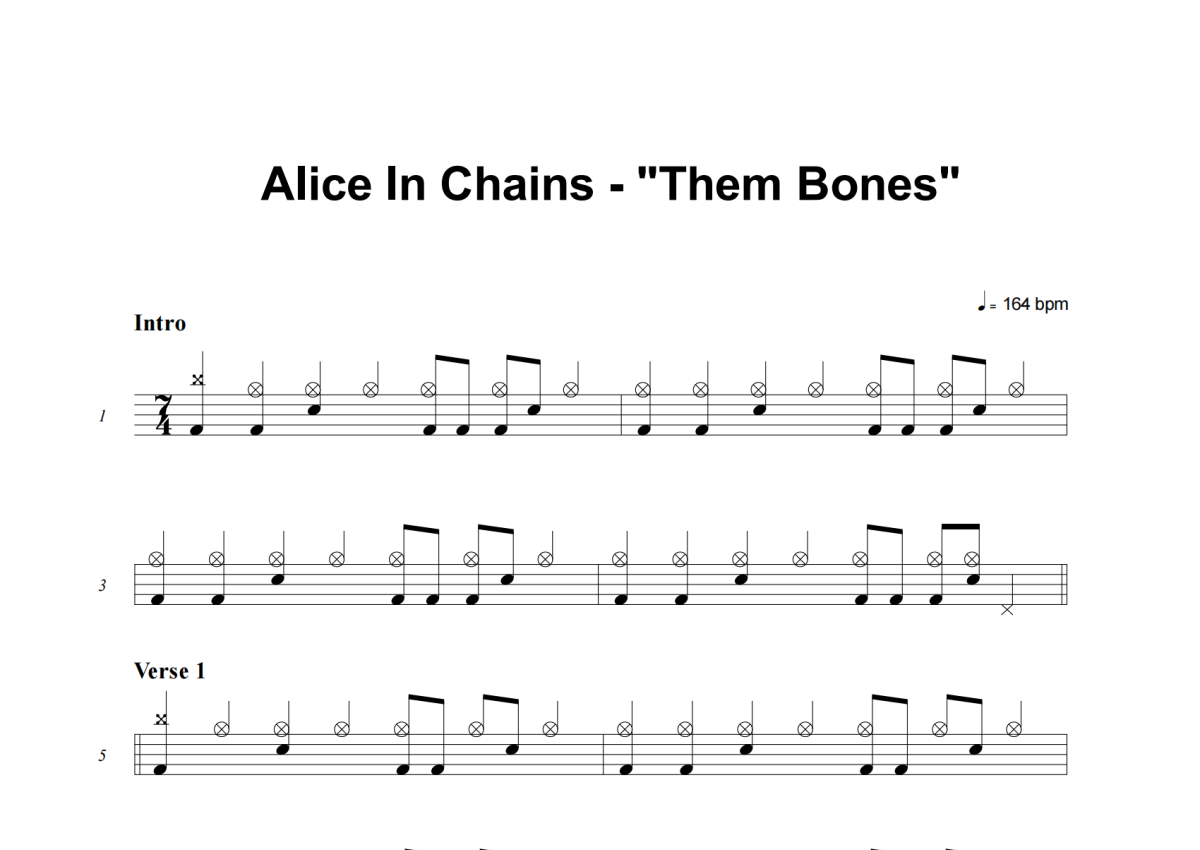 《Them Bones》是Alice In Chains演唱的一首歌曲,这份架子鼓谱共有四张高清图谱,图谱由 @举个例子 编配上传,图谱使用五线谱编配,使用这份Them Bones架子鼓谱,你将能够轻松地敲打出这首Alice In Chains的Them Bones,快来尝试吧。