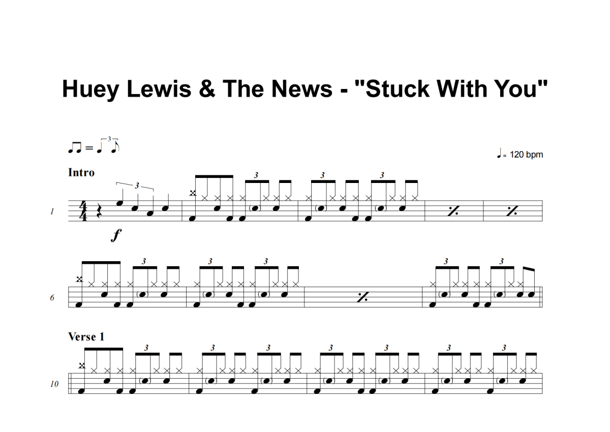 Huey Lewis And The News《Stuck With You》架子鼓谱