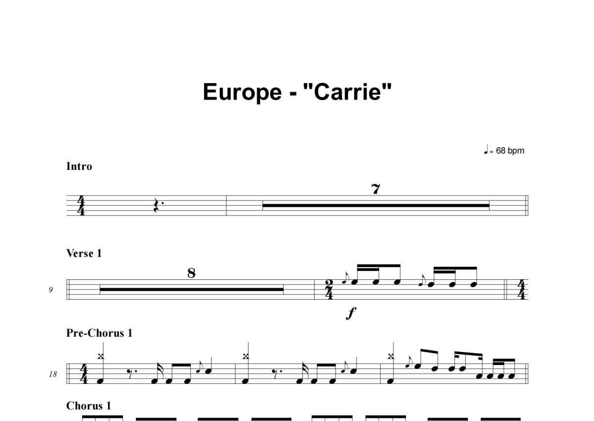 Europe《Carrie》架子鼓谱