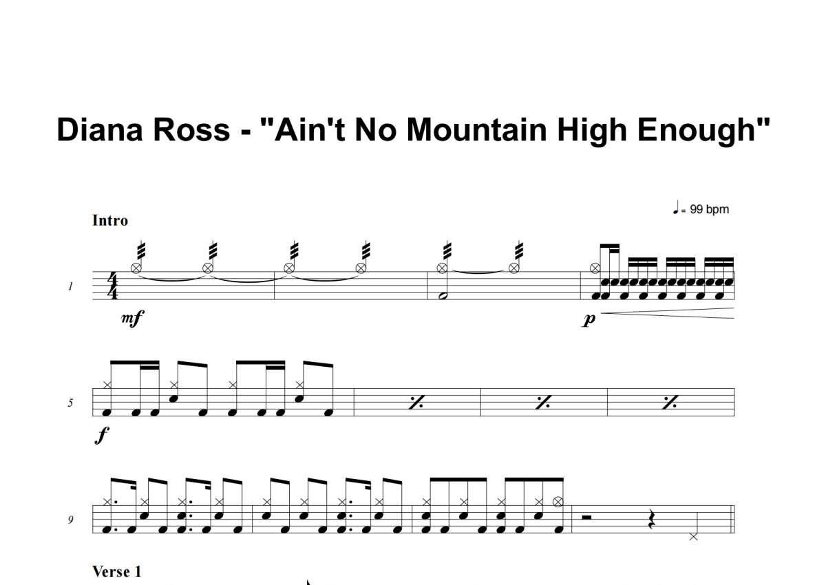 Diana Ross《Ain't No Mountain High Enough》架子鼓谱