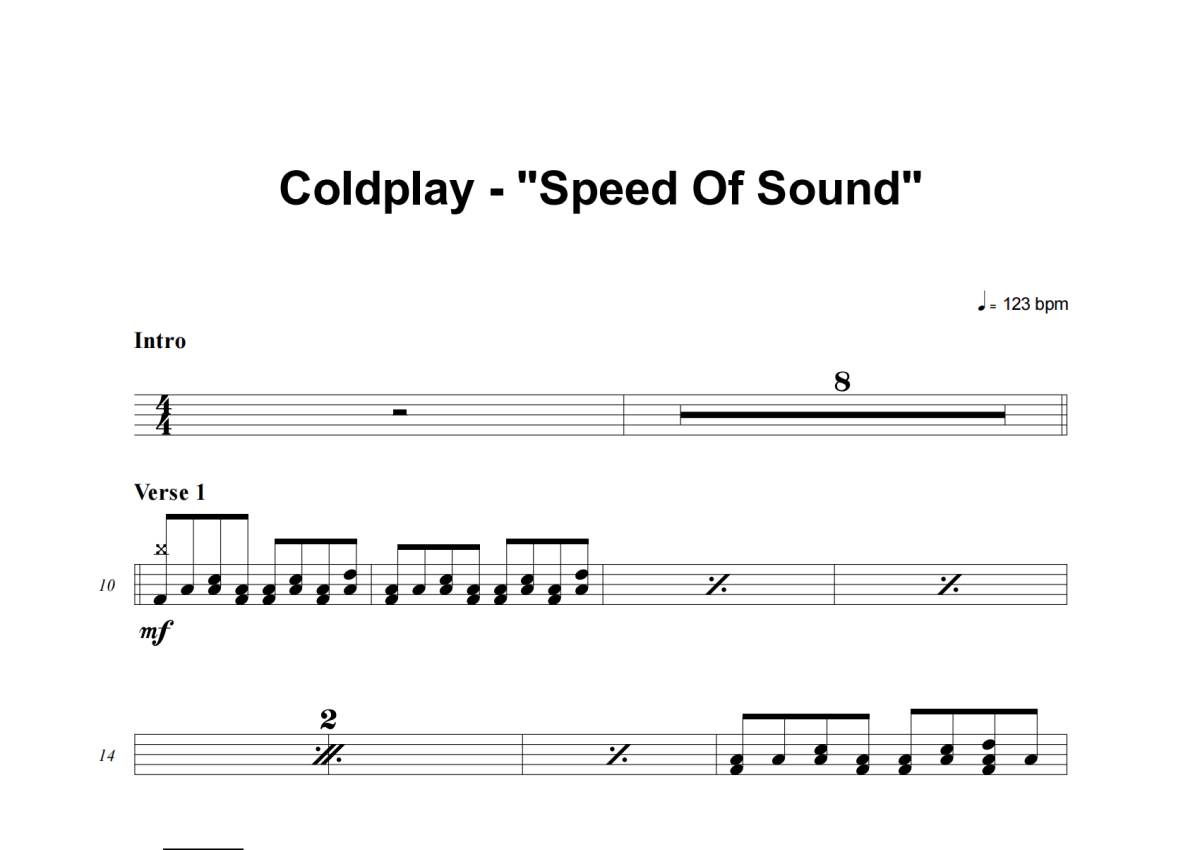 Speed Of Sound架子鼓谱 - Coldplay演唱