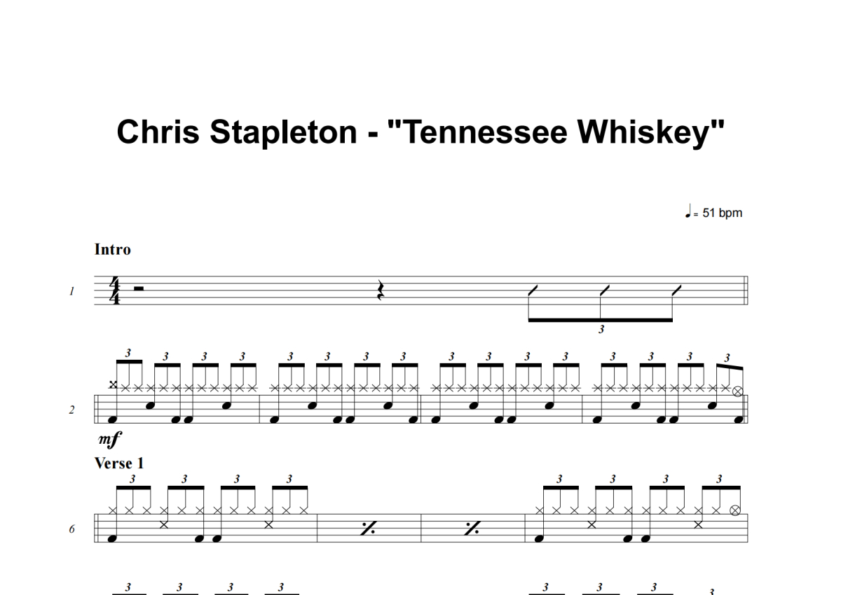 Chris Stapleton《Tennessee Whiskey》架子鼓谱