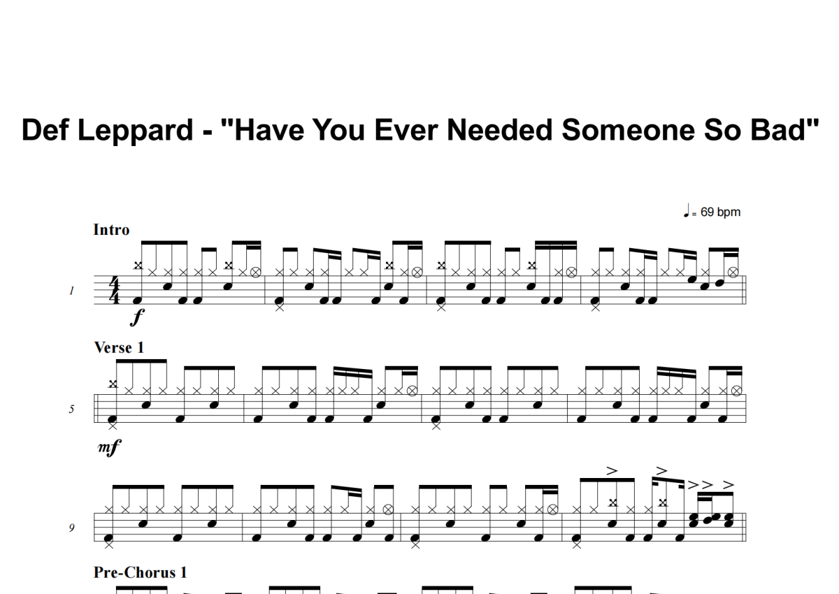 Def Leppard《Have You Ever Needed Someone So Bad》架子鼓谱