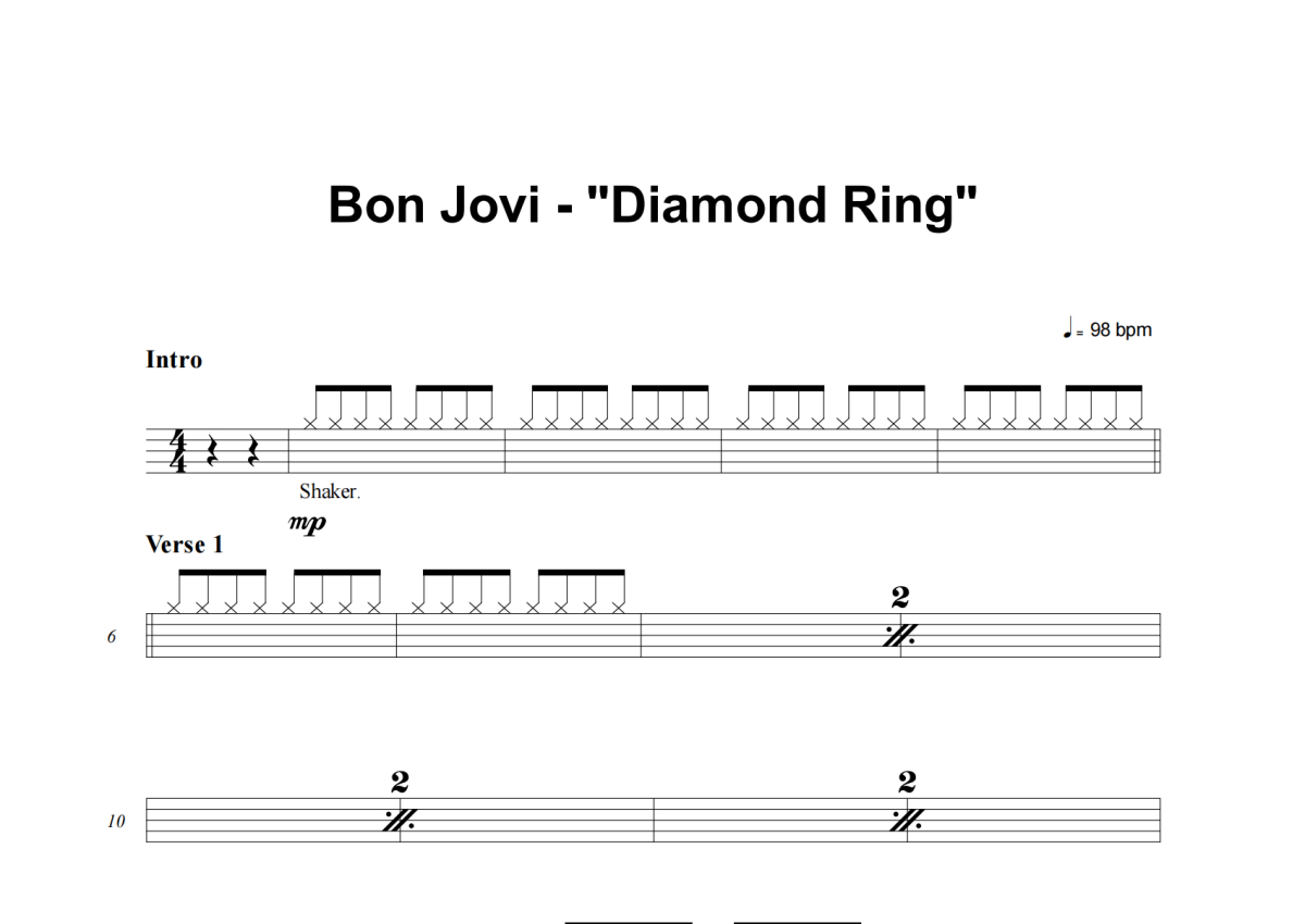 Bon Jovi《Diamond Ring》架子鼓谱