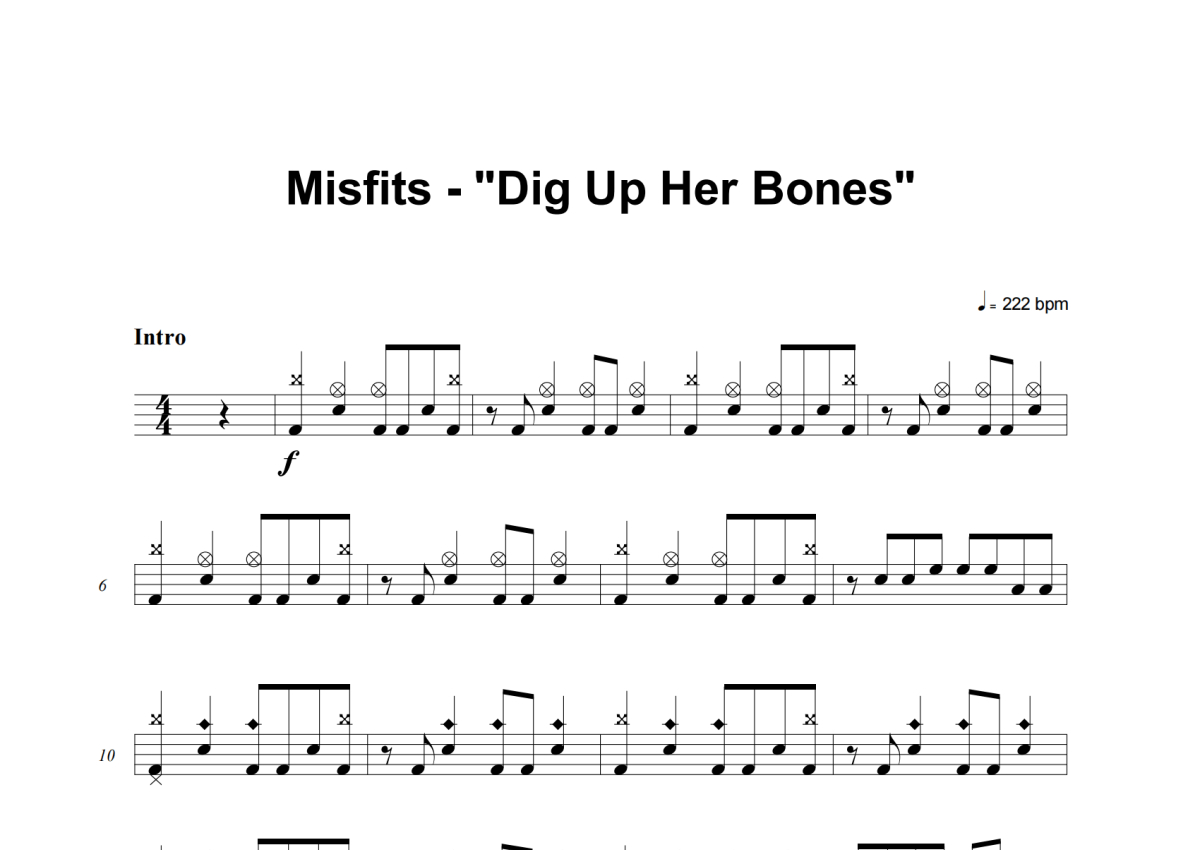 《Dig Up Her Bones》是Misfits演唱的一首歌曲,这份架子鼓谱共有五张高清图谱,图谱由 @举个例子 编配上传,图谱使用五线谱编配,使用这份Dig Up Her Bones架子鼓谱,你将能够轻松地敲打出这首Misfits的Dig Up Her Bones,快来尝试吧。
