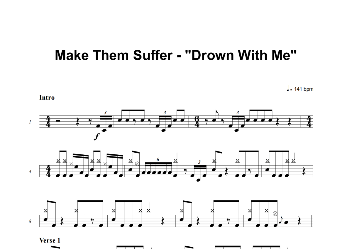 Make Them Suffer《Drown WIth Me》架子鼓谱