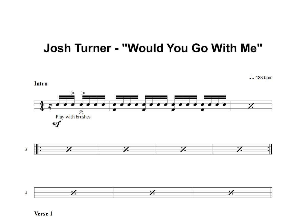 Josh Turner《Would You Go With Me》架子鼓谱