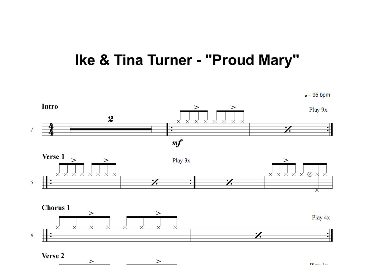 Ike & Tina Turner《Proud Mary》架子鼓谱