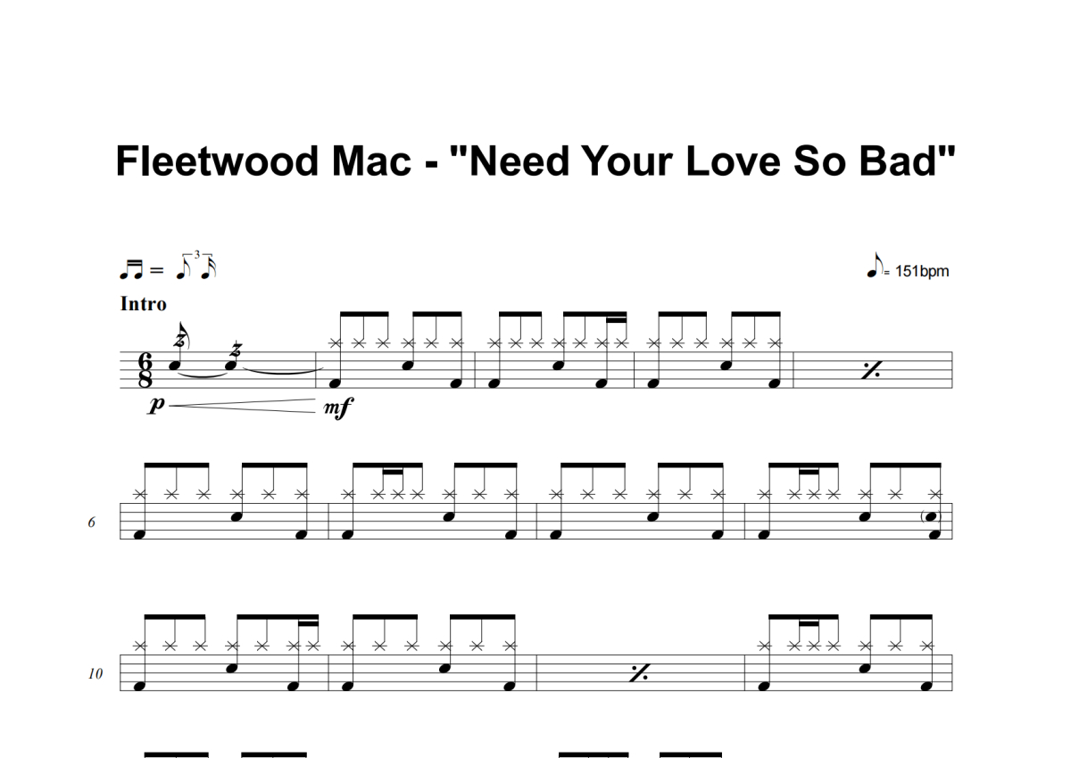 Fleetwood Mac《Need Your Love So Bad》架子鼓谱