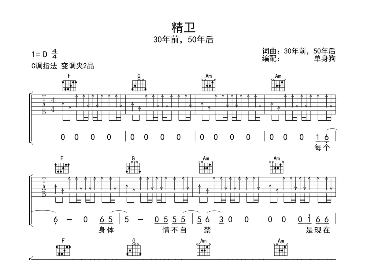 《精卫》是30年前,50年后演唱的一首歌曲,本吉他谱采用的是C调指法编配,这份吉他谱共有四张高清图谱,图谱由 @单身狗 编配上传,图谱使用六线谱编配,包含吉他和弦指法、简谱以及歌词部分,使用这份精卫吉他谱,可以让你更加方便地掌握这首歌曲的弹唱技巧,快来尝试吧。30年前,50年后《精卫》吉他弹唱谱,采用C调指法编配,单身狗编配出品,共有4张高清图谱。