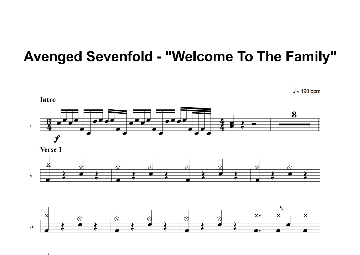 Avenged Sevenfold《Welcome To The Family》架子鼓谱