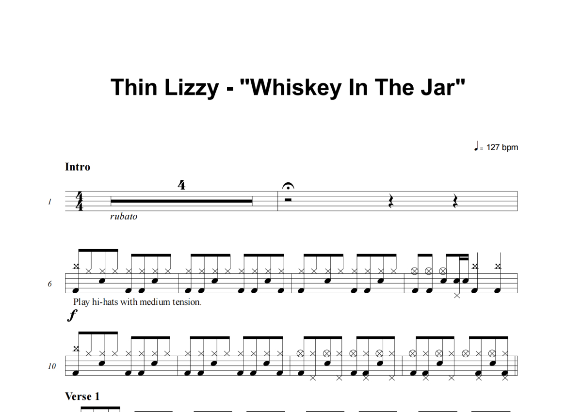 Thin Lizzy《Whiskey In The Jar》架子鼓谱