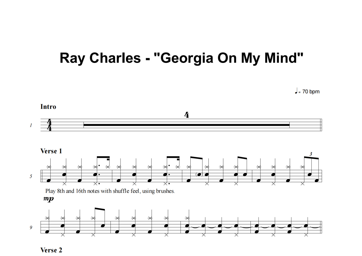 Ray Charles《Georgia On My Mind》架子鼓谱