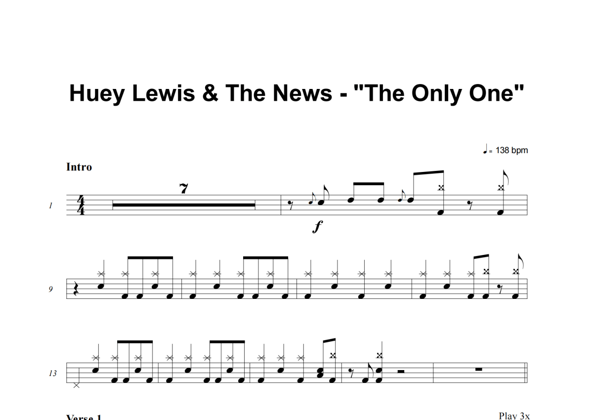 Huey Lewis And The News《The Only One》架子鼓谱