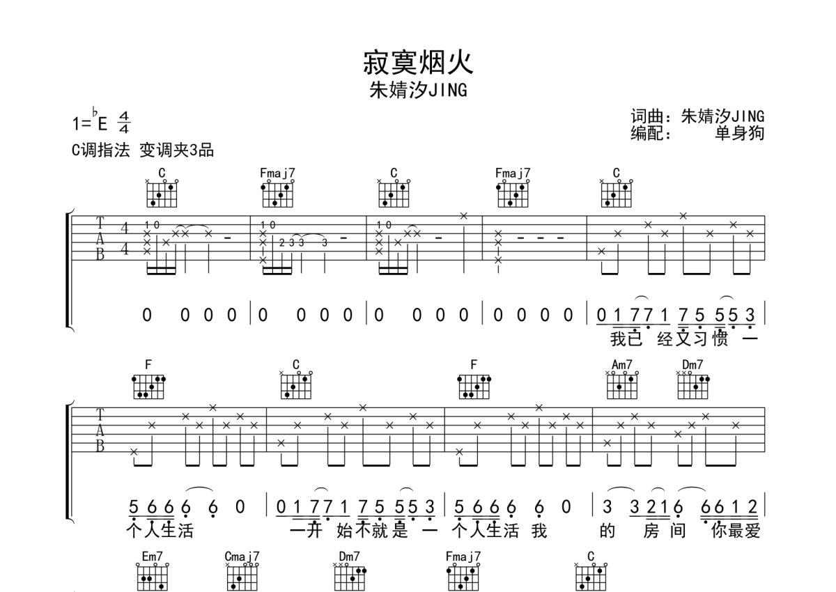 朱婧汐《寂寞烟火》吉他谱 - C调弹唱六线谱
