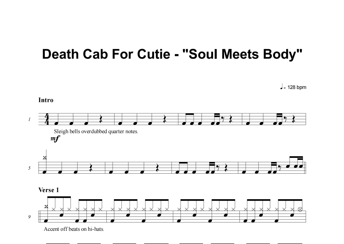 Death Cab For Cutie《Soul Meets Body》架子鼓谱