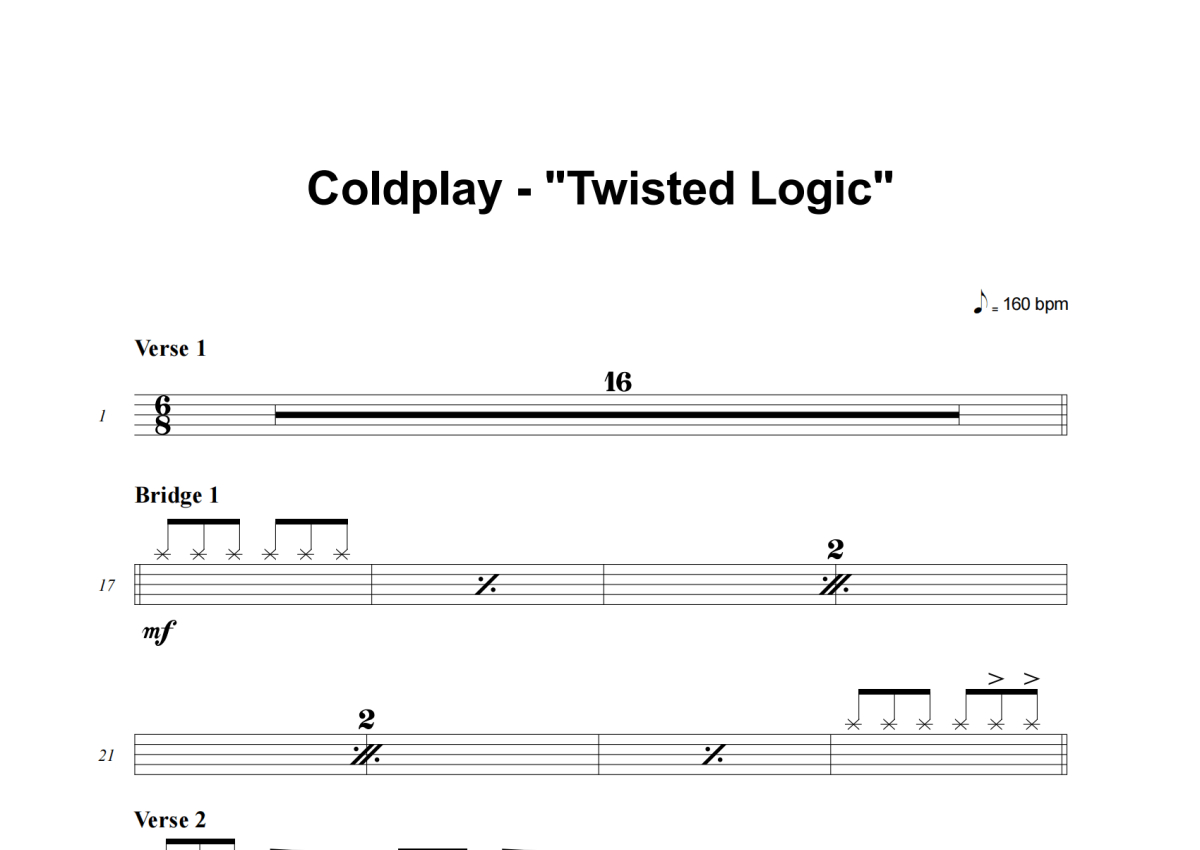Coldplay《Twisted Logic》架子鼓谱