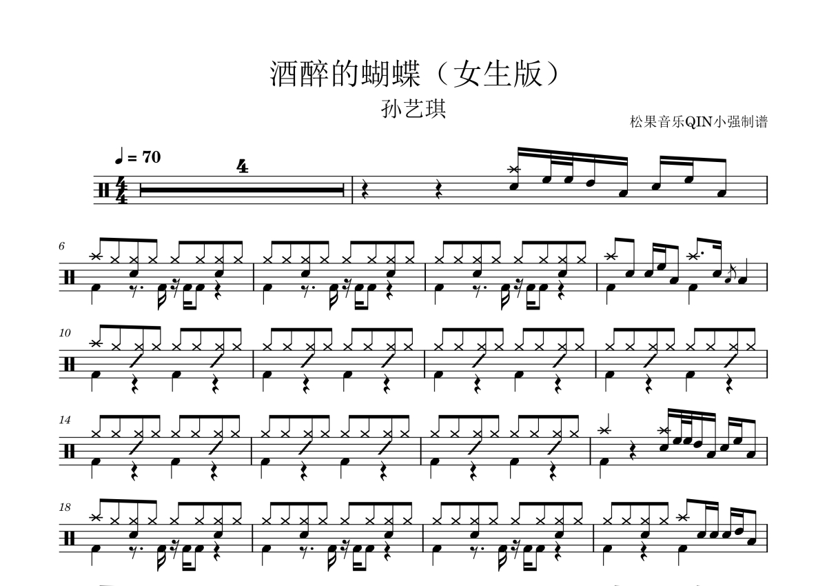 孙艺琪《酒醉的蝴蝶(女声版)》架子鼓谱