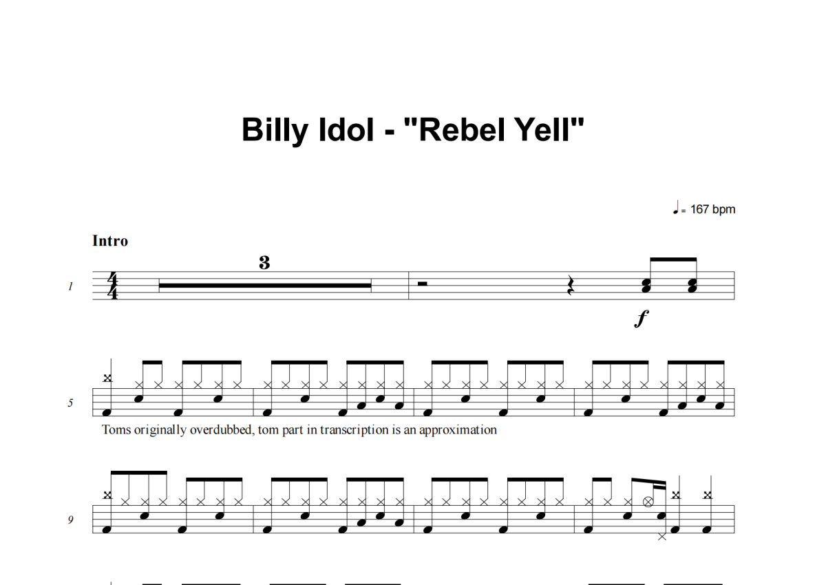 Billy Idol《Rebel Yell》架子鼓谱