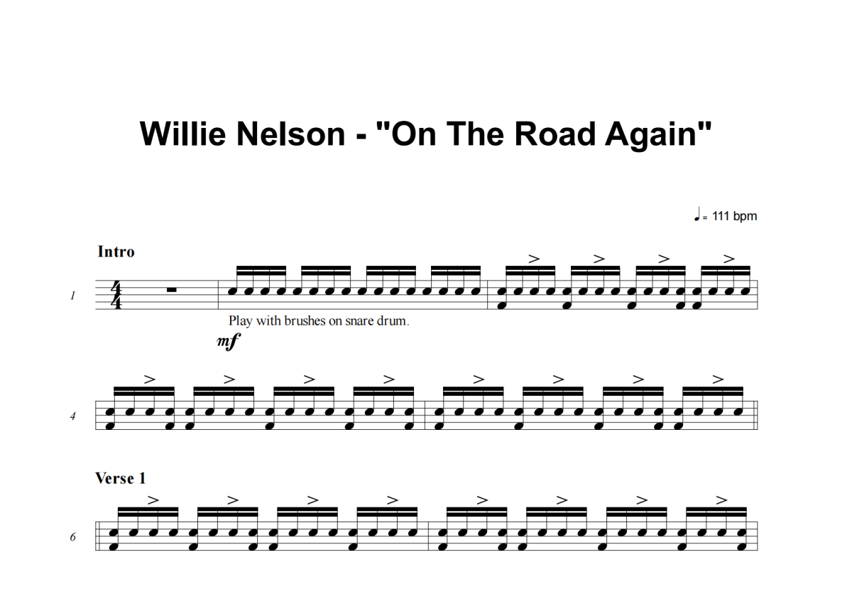 Willie Nelson《On The Road Again》架子鼓谱