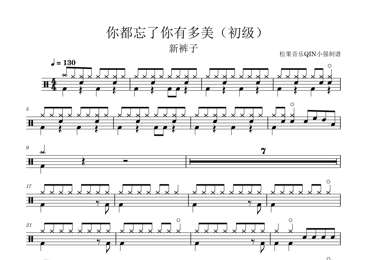 新裤子《你都忘了你有多美(初级)》架子鼓谱