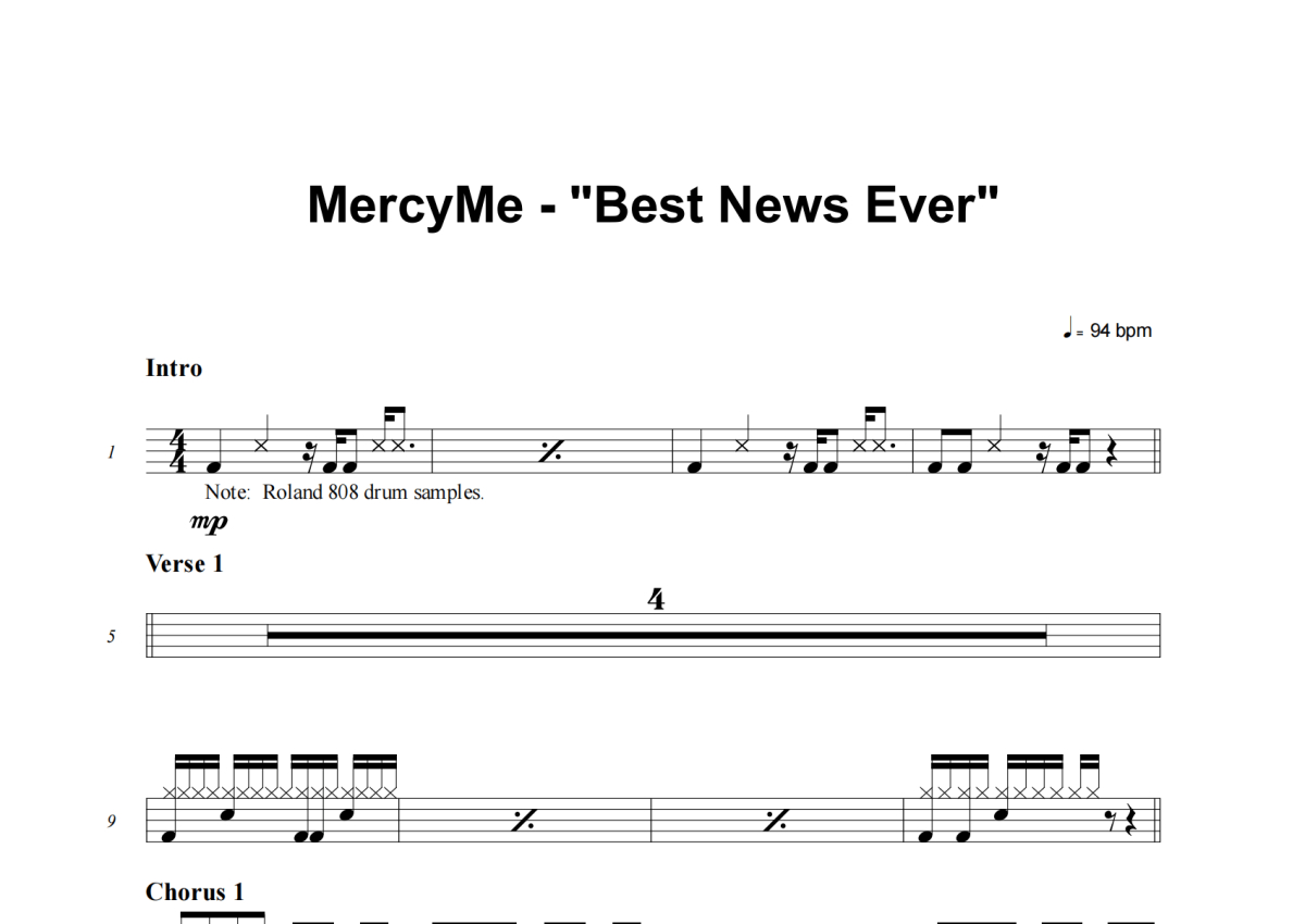 《Best News Ever》是MercyMe演唱的一首歌曲,这份架子鼓谱共有三张高清图谱,图谱由 @举个例子 编配上传,图谱使用五线谱编配,使用这份Best News Ever架子鼓谱,你将能够轻松地敲打出这首MercyMe的Best News Ever,快来尝试吧。