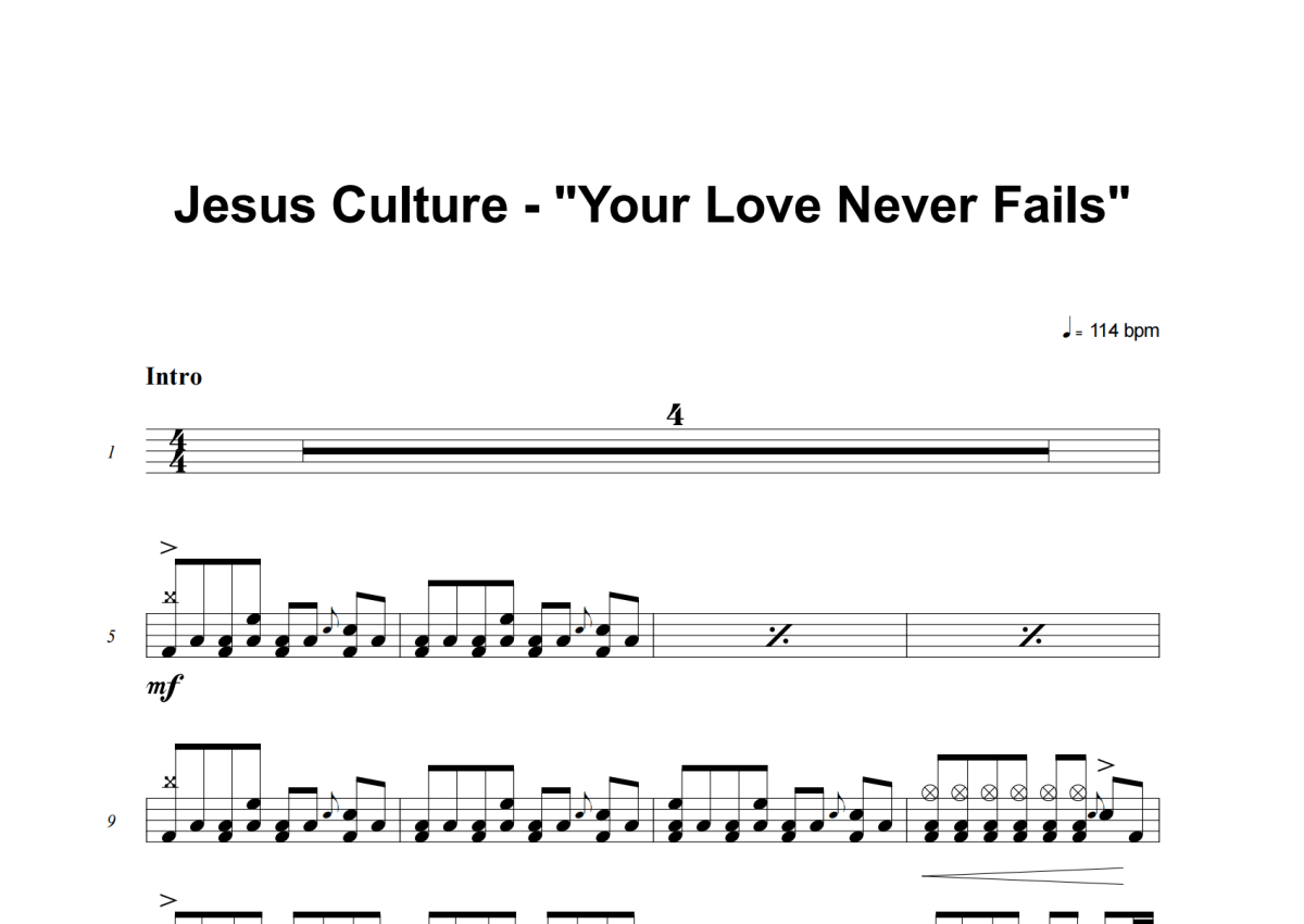 Jesus Culture《Your Love Never Fails》架子鼓谱