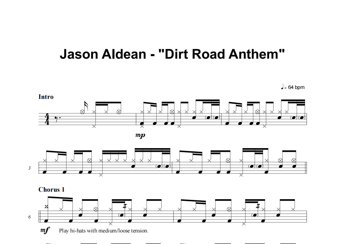Jason Aldean《Dirt Road Anthem》架子鼓谱
