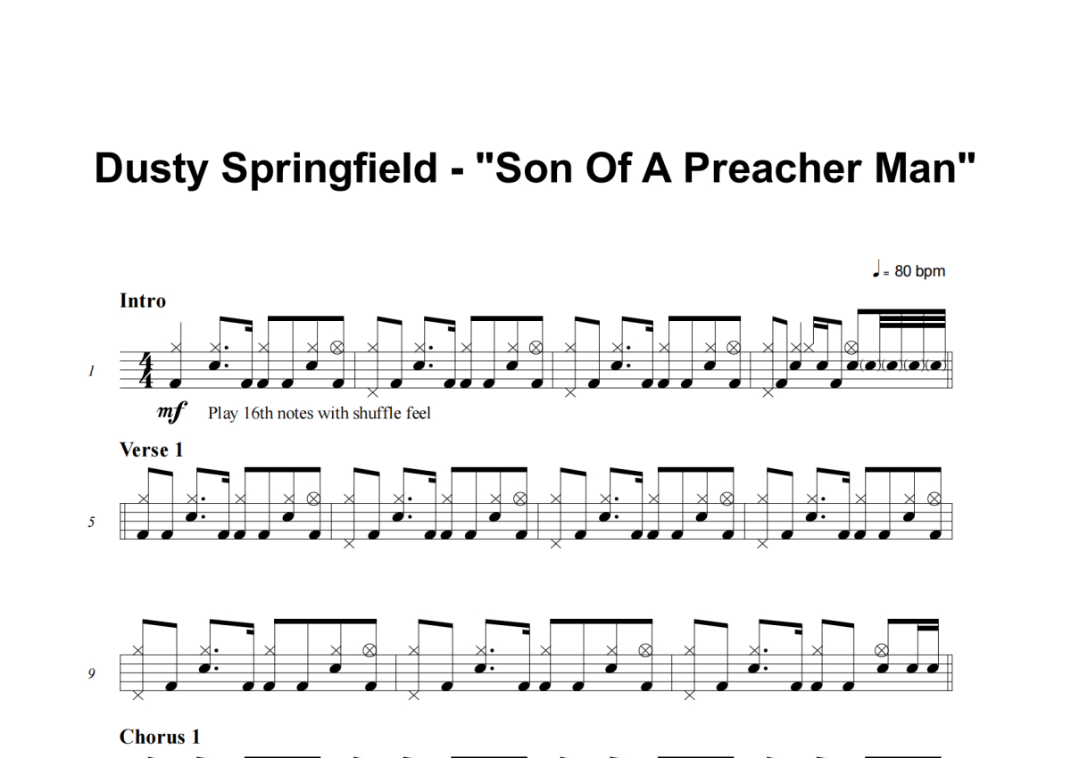 Dusty Springfield《Son Of A Preacher Man》架子鼓谱