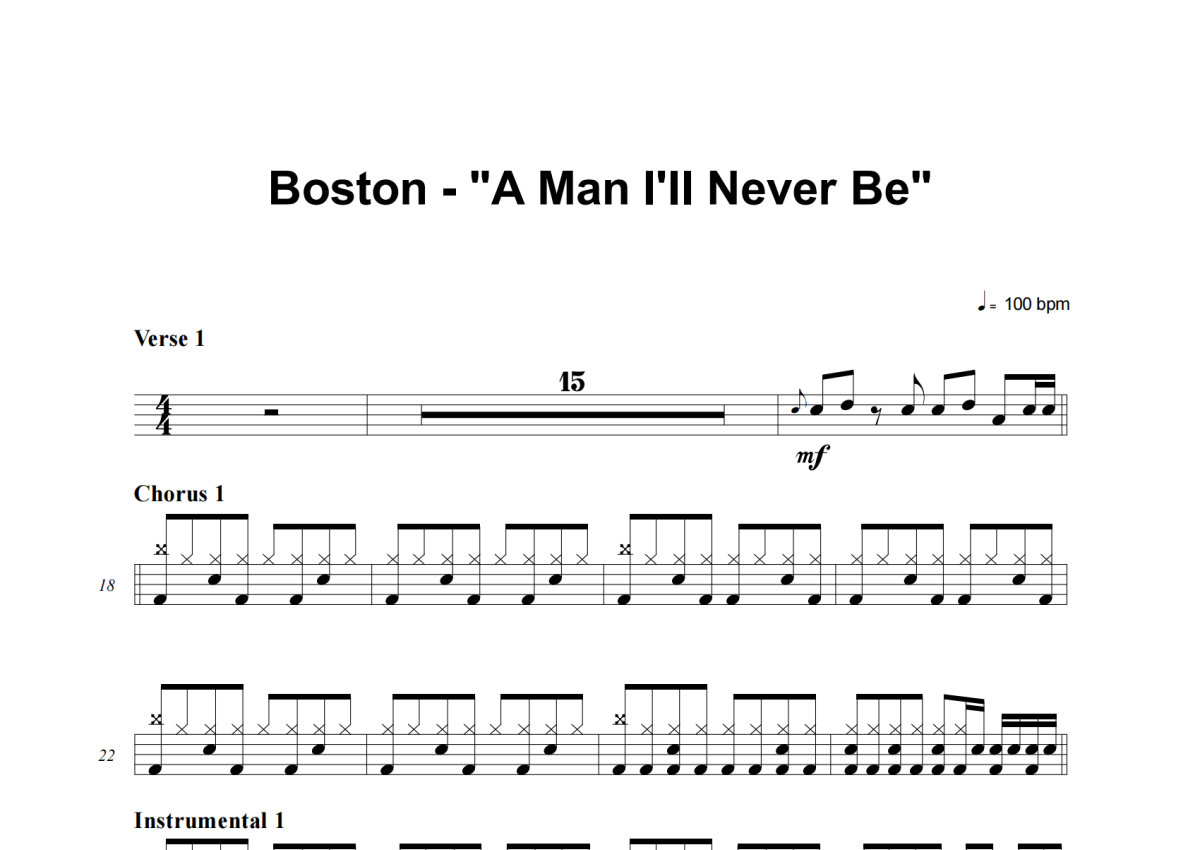 《A Man I'll Never Be》是Boston演唱的一首歌曲,这份架子鼓谱共有五张高清图谱,图谱由 @举个例子 编配上传,图谱使用五线谱编配,使用这份A Man I'll Never Be架子鼓谱,你将能够轻松地敲打出这首Boston的A Man I'll Never Be,快来尝试吧。